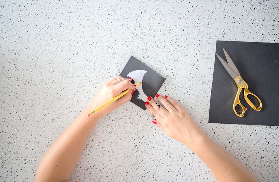 5. Cut out a bat wing template and trace it on the black construction paper. Don’t forget to fold the paper in half so you can cut both wings at the same time.